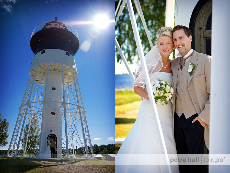 Igår, den 12 juli, gifte sig Linda och Micke i Öjeby kyrka. Då de skulle ha festen i Jävre (några mil söder om Piteå), så bestämde vi att ta lite bilder i Jävre Hamn. Det var strålande sol och underbart sommarväder! Dock skojade jag lite (med ett gryn av sanning) att det var ett hemskt väder – för mig som fotograf, då det blir så himla starka skuggor. Men vi lyckades ändå fånga många fina bilder, så jag tror nog det blev bra ändå. Här kommer ett litet smakprov från vår fotosession kring fyren i Jävre Hamn.