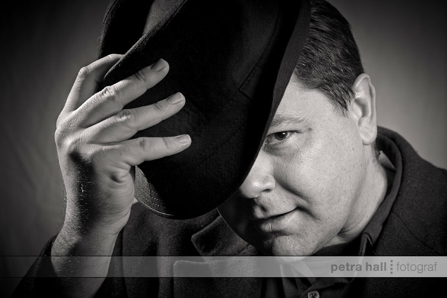 Jag försökte få någon känsla av gamla Hollywoodporträtt, men jag vet inte direkt om jag lyckades. Däremot hade vi jättekul under de timmar vi befann oss i studion och vi tog några hundra bilder sammanlagt. Här kommer några få utvalda, där jag tyckte J såg riktigt tuff ut (fast han är jättesnäll).